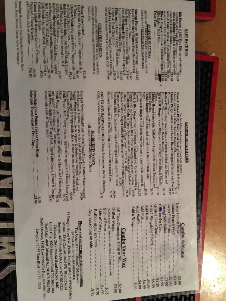 Introducing JR Crickets - a sports bar specializing in chicken wings located in Lithonia, GA. Offering a range of buffalo style wings in various quantities and flavors, JR Crickets also has combos like wings & shrimp, wings & tenders, wings & fish, and wings & ribs. Customers rave about the flavors, service, and ambiance, with mentions of favorites like the Dirty Bird wings and the fried shrimp. With amenities like outdoor seating, full bar, TV, and free Wi-Fi, JR Crickets caters to a diverse crowd looking for a fun and delicious dining experience. Don't miss out on trying their signature dishes and cocktails, like the Hennessy Margarita. Visit JR Crickets for a memorable night out filled with great food and good vibes.
